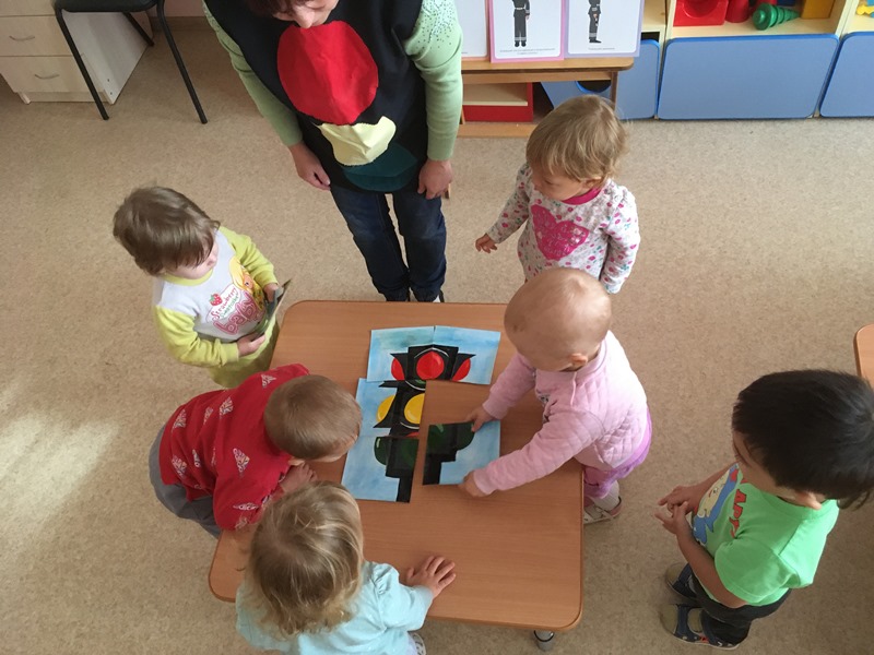 Неделя безопасного движения "Азбука пешехода". Дети нашей группы познакомились со светофором. Учились понимать значение красного, жёлтого и зелёного цвета "глаз" светофора, поведению на улице. Рассматривали иллюстрации по теме, ознакомились с макетом улицы, проходящей через неё дорогой с пешеходными переходами.